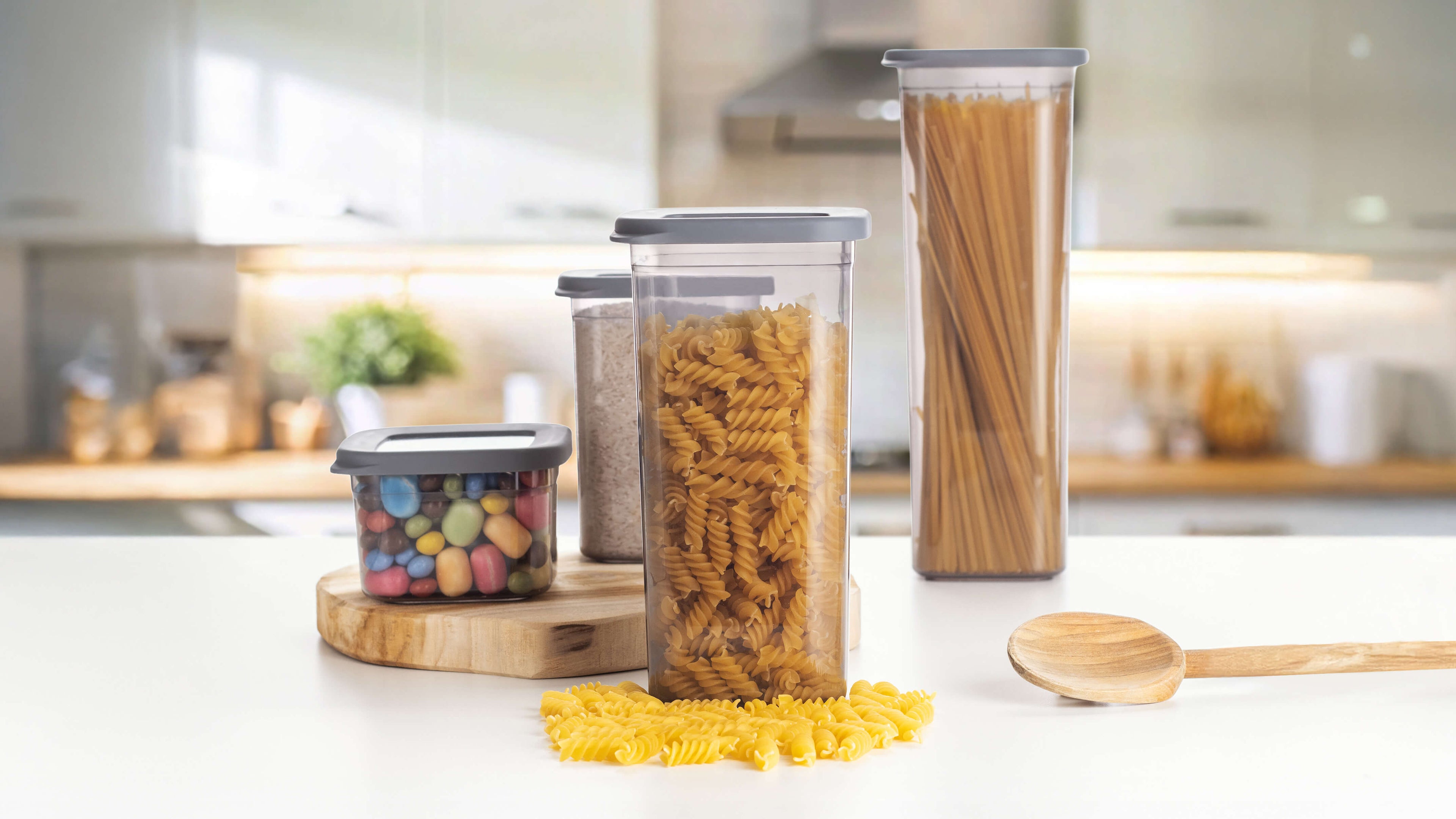 Mit unseren Vorratsdosen bringst du Ordnung und Eleganz in deine Küche. Unsere luftdichten Behälter halten Lebensmittel länger frisch und überzeugen durch ihr modernes Design. Erhältlich in verschiedenen Größen, sind sie perfekt stapelbar und passen sich deinen Bedürfnissen an. Dank der transparenten Optik behältst du jederzeit den Überblick über deine Vorräte. Egal ob Nudeln, Müsli oder Gewürze – mit Qoona wird Aufbewahren zum Genuss.