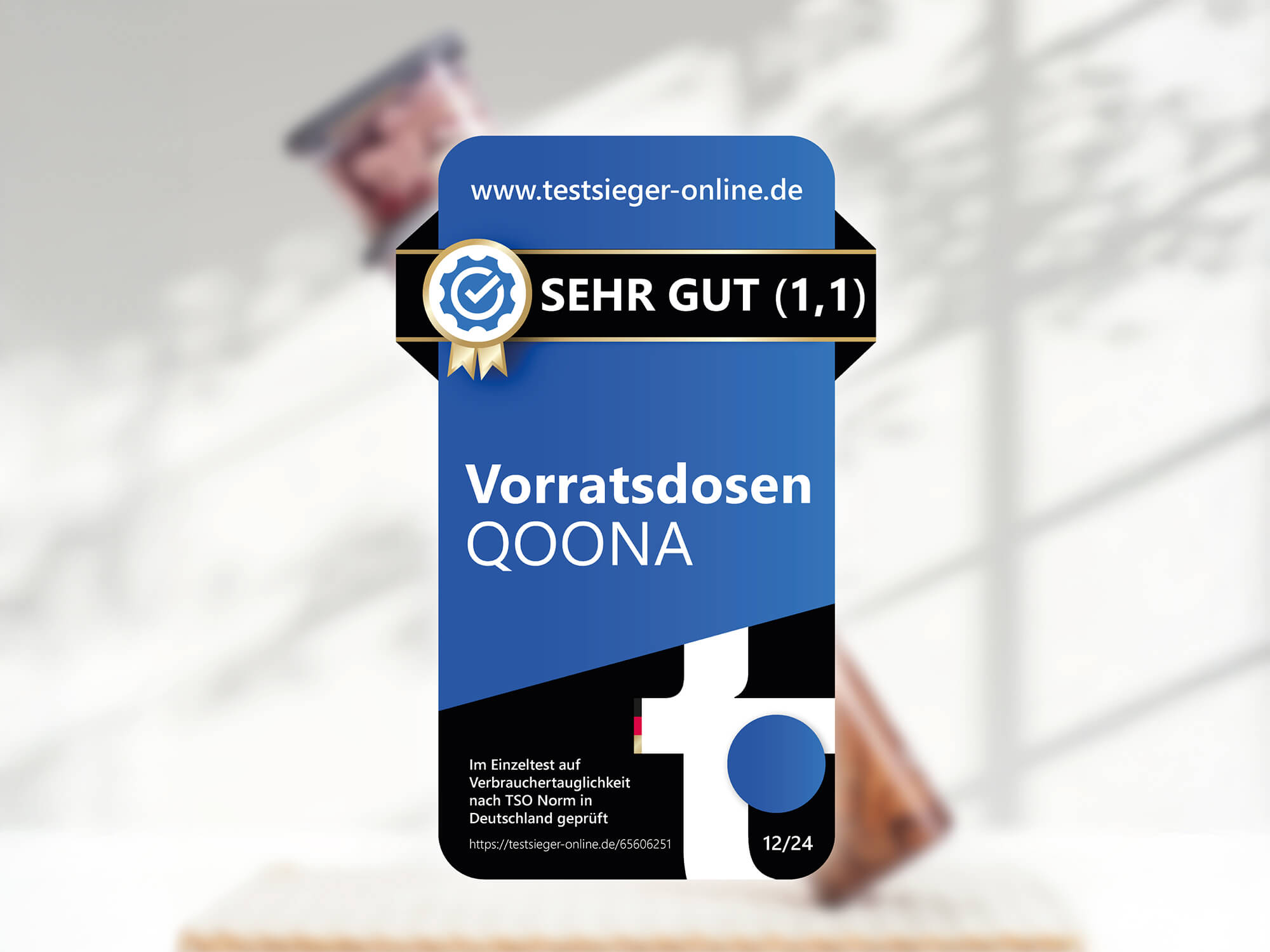Unsere Vorratsdosen von Qoona haben den Test mit Bravour bestanden und sind offiziell Testsieger mit der Note 1,1 – Sehr Gut!